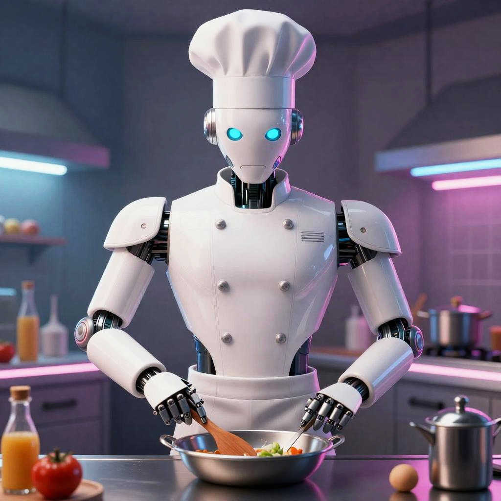 Futuristic Robot Chef in Neon Kitchen