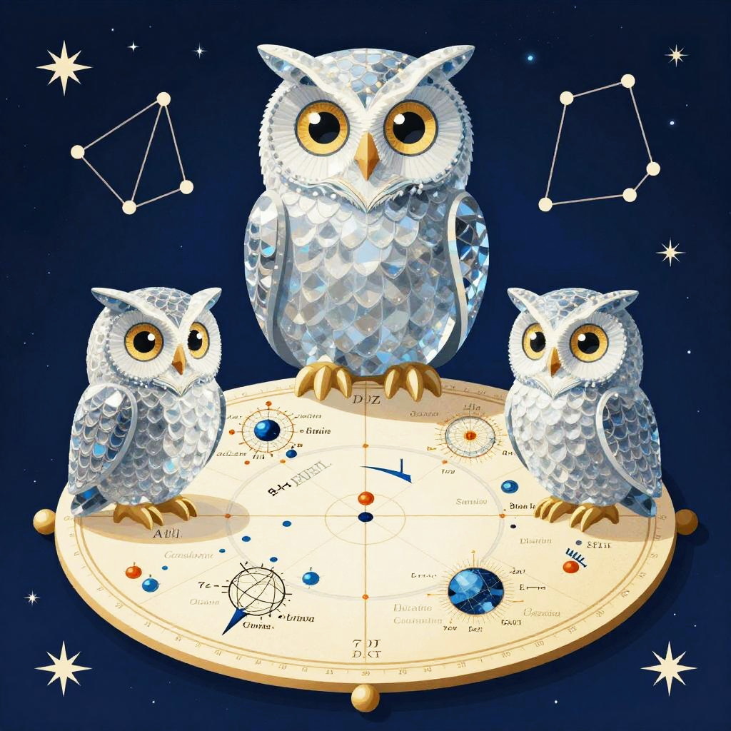 Renaissance Astronomer with Crystal-Eyed Owls