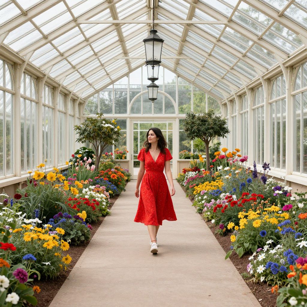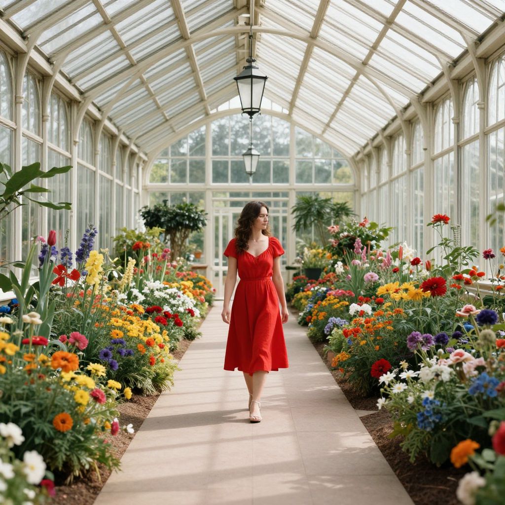 Graceful Woman in Vibrant Greenhouse