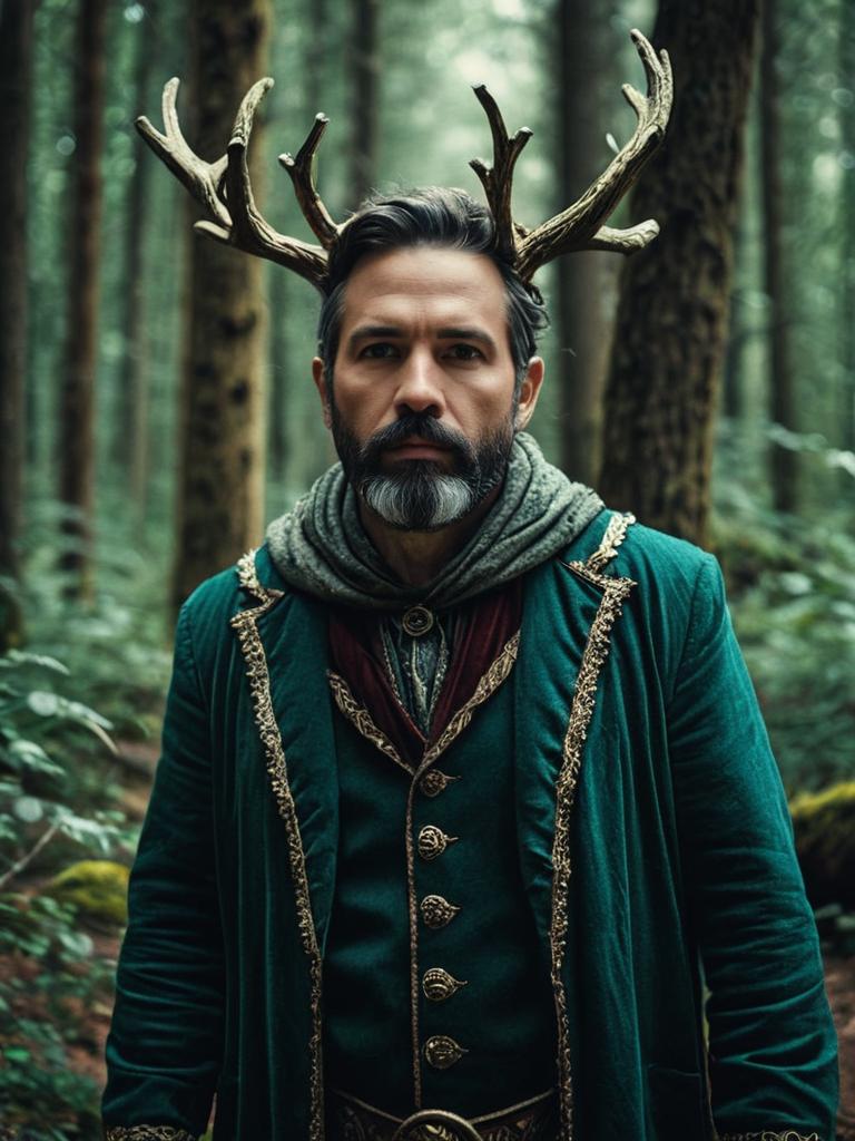 Man in Enchanted Forest Costume with Antlers