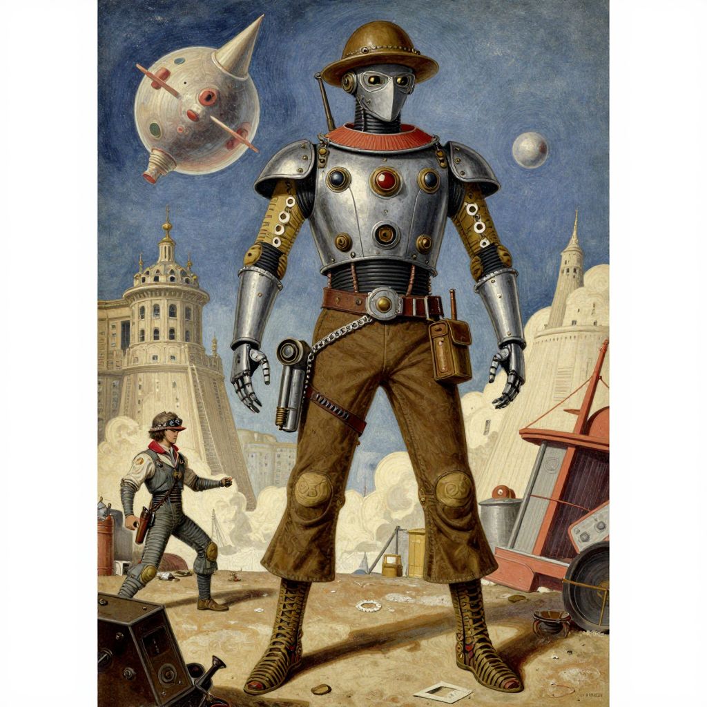 1950 s pulp science fiction magazine cover art steampunk space inventer adventure robot explorer costume. muted colors. by jean - baptiste monge!!!!!!!!!!!!!!!!!!!!!!!!!!!!!!