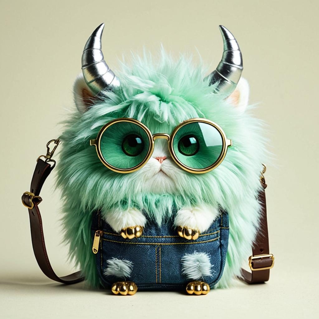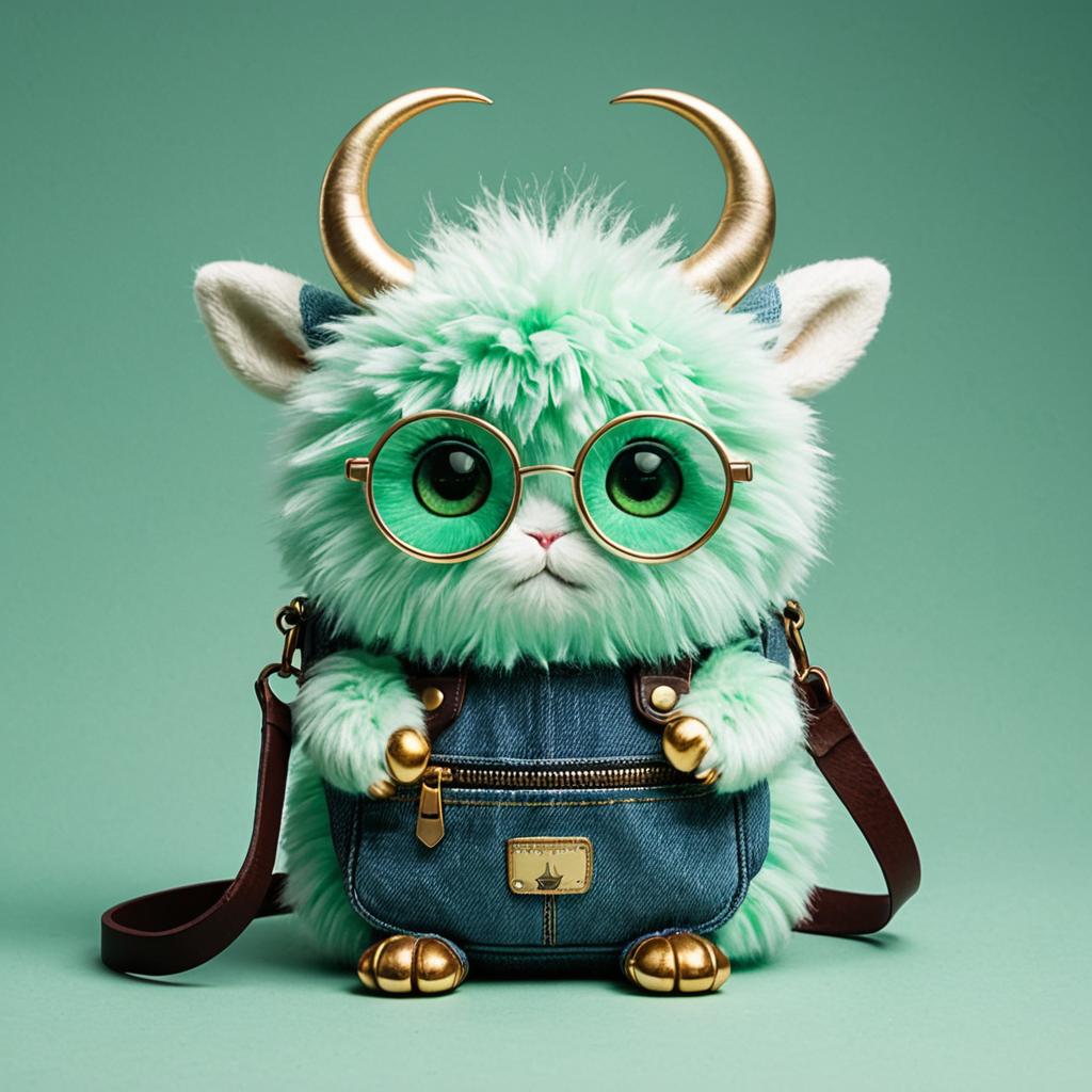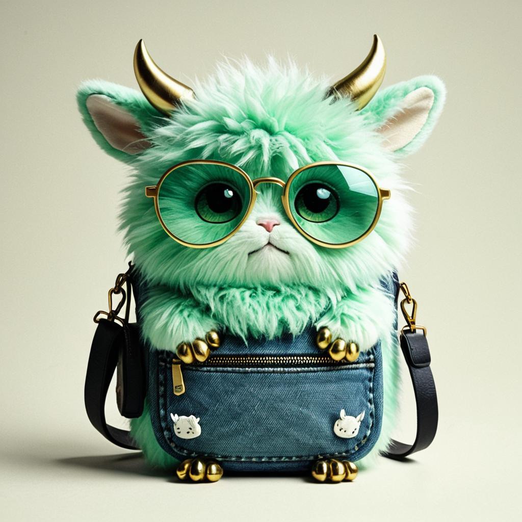 Fluffy Mint Green Creature with Glasses and Messenger Bag