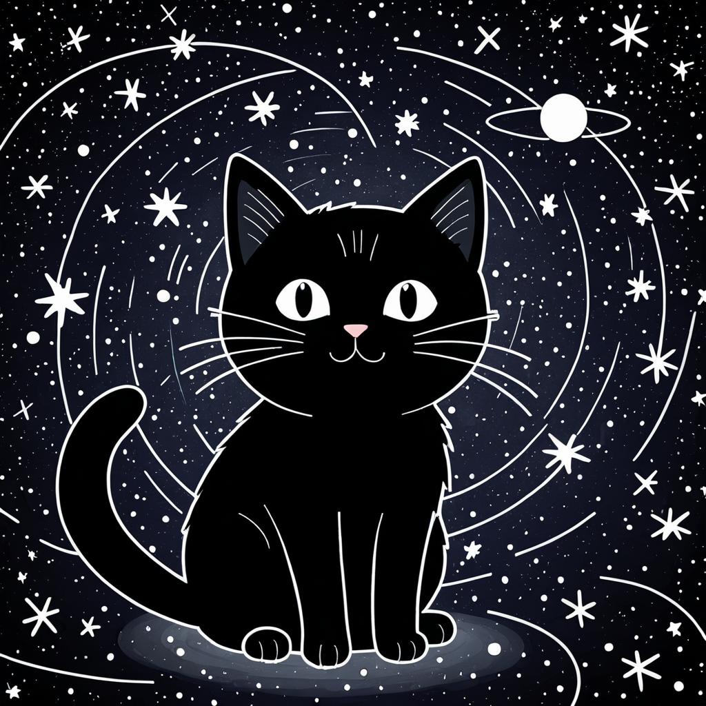 Simple cartoon drawing of a cute alien in outer space, with a minimalistic style, galaxy background, twinkling stars, playful and cute, easy to draw with simple lines and minimal details.