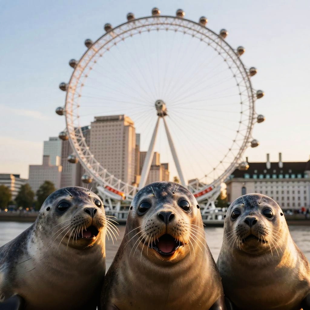 A close-up selfie of three dogs with different expressions in front of the iconic Colosseum, taken at golden hour with cinematic lighting. The animals are positioned close to the camera with their heads touching, mimicking a selfie pose, showing joyful, surprised, and calm expressions. The background features the full architectural detail of Colosseum, softly illuminated, with a warm ambient atmosphere. Shot in a photographic, realistic cartoon style, high detail, 1:1 aspect ratio.