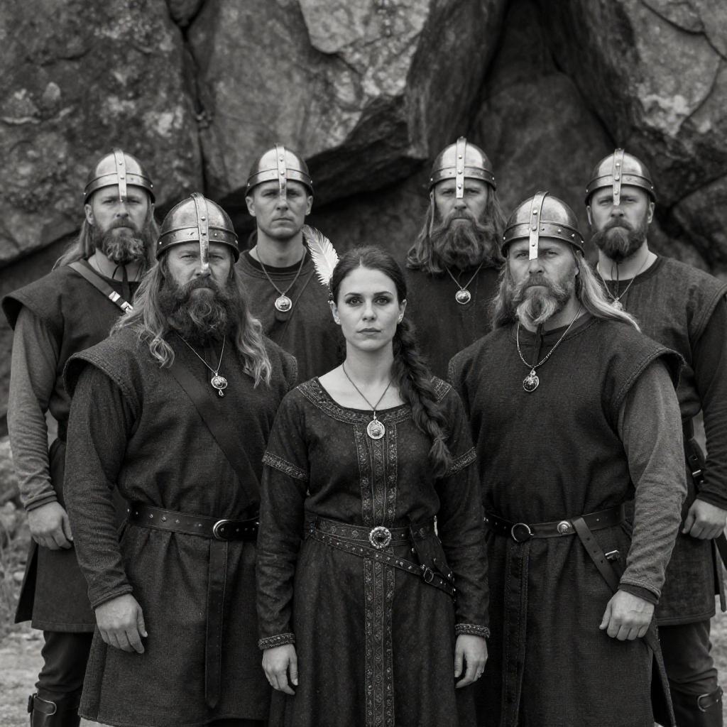 Black-and-White Viking Group on Rocks