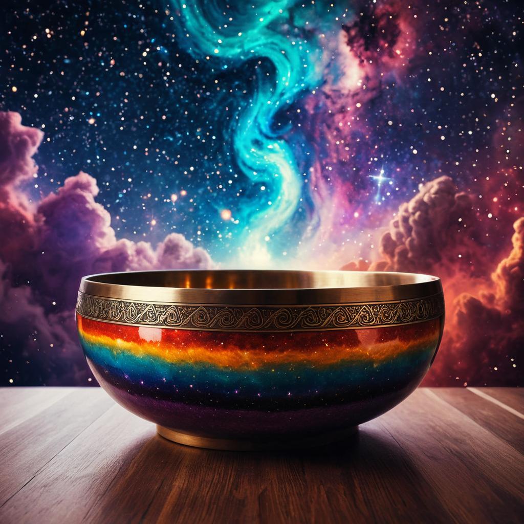 Highly detailed, ultra-realistic glamour shot of lotus flower in chakra colors, with the universe in the background. Rendered in 12K, cinematic lighting, intricate details, surreal and spiritual vibe, by artist Chris-Anne, sharp and vivid