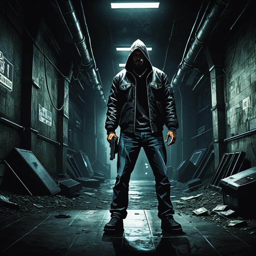 Grand Theft Auto inspired illustration of an agile parkour runner, set in a rooftop cityscape at dawn.