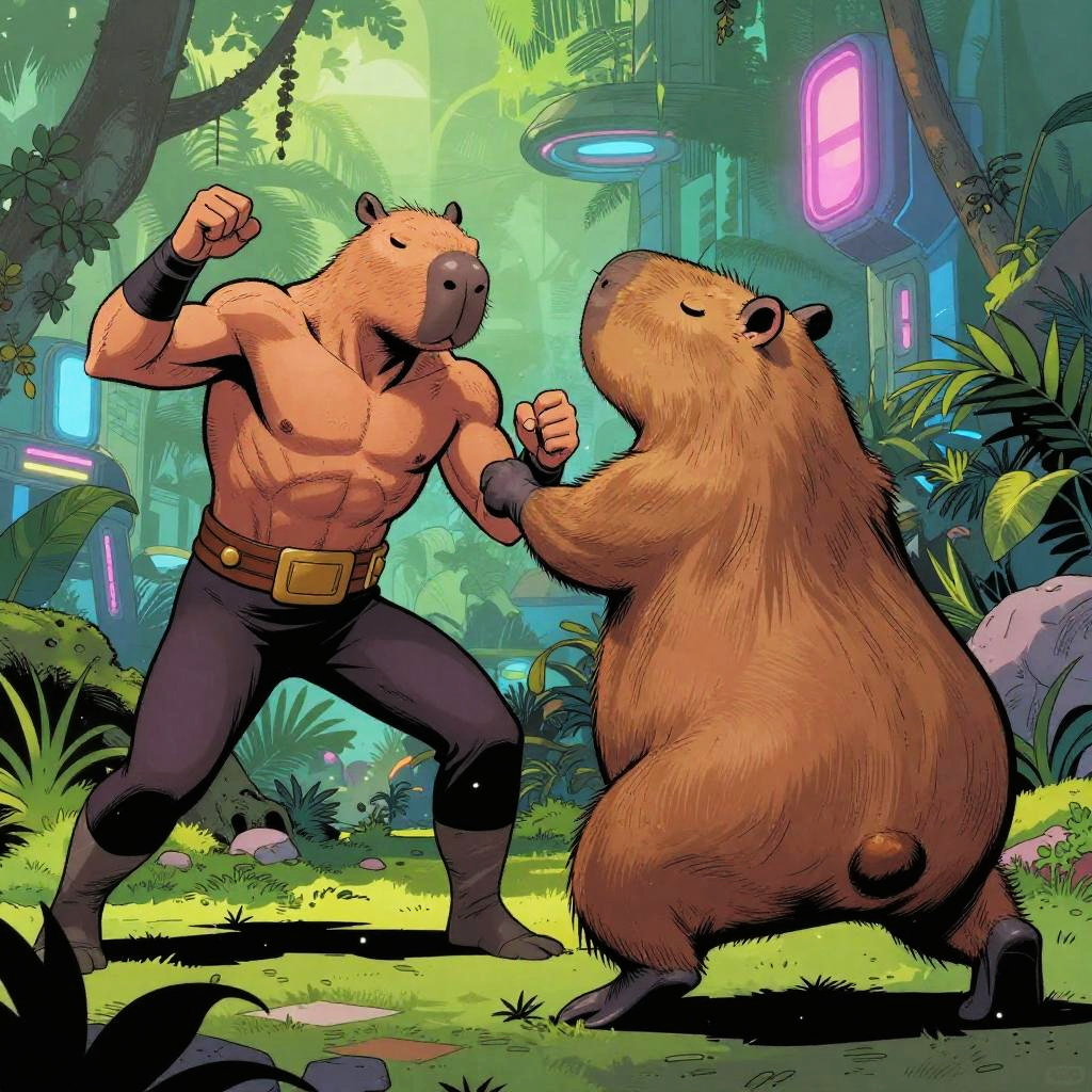 Futuristic Capybara Comic Battle