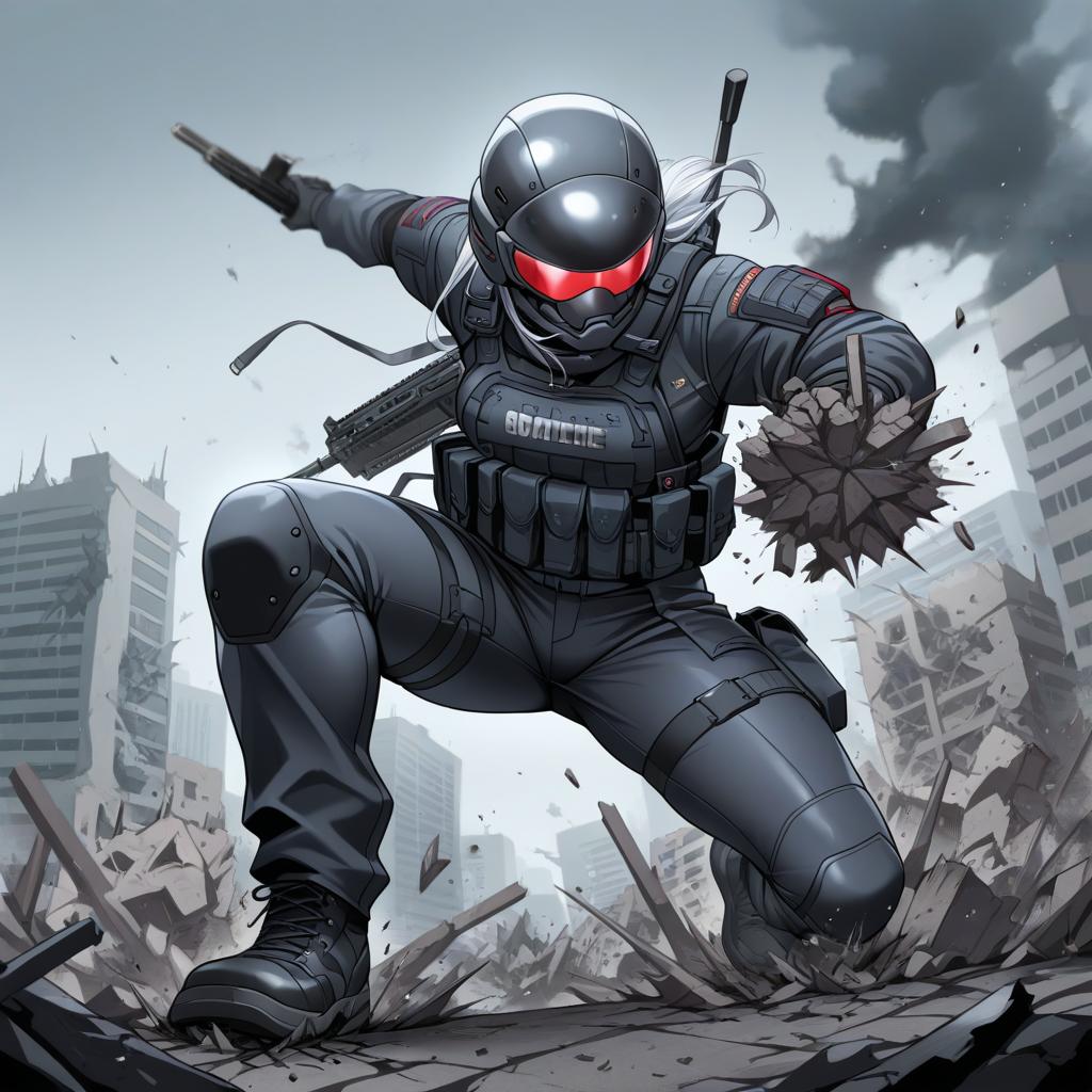 1girl, ak15suit, gtscity, (rampage, destruction:1.4)