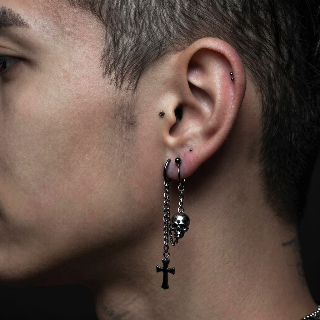 Gothic Ear Piercings with Chains