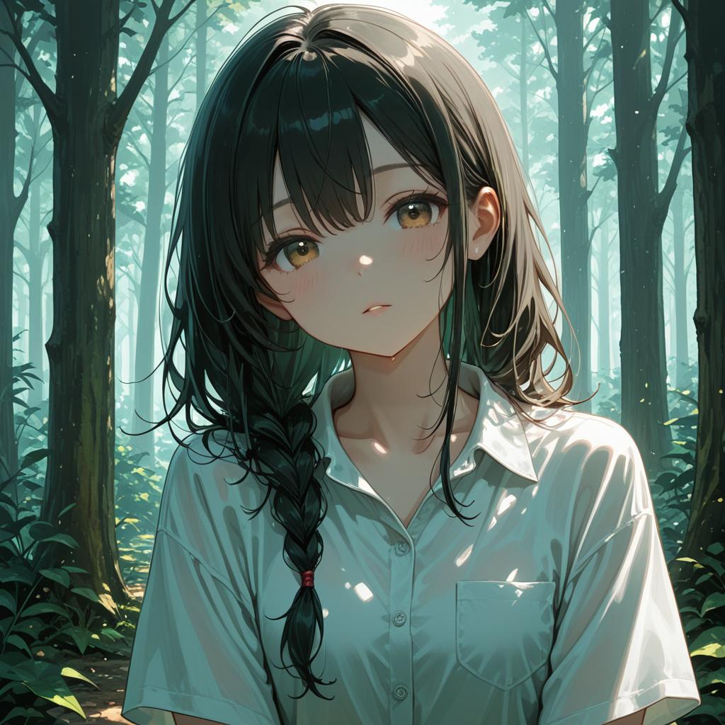 1girl, upper body, forest, looking at viewer