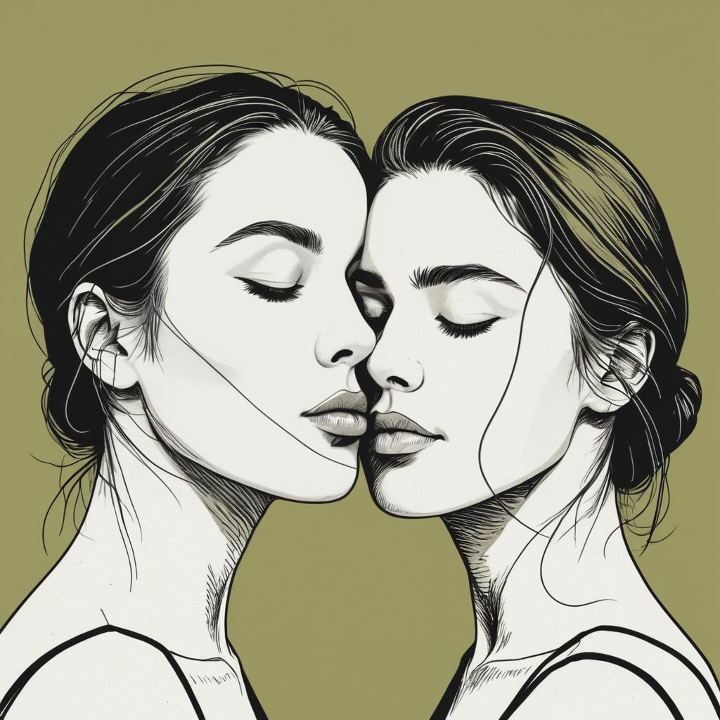 Minimalist line art of a pair of lips about to kiss, soft lavender background, simple and elegant, conveys intimacy, evokes romantic feeling