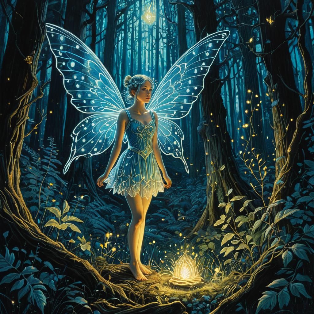 Etherial butterfly fairy with luminous wings, art by Loish, magical meadow