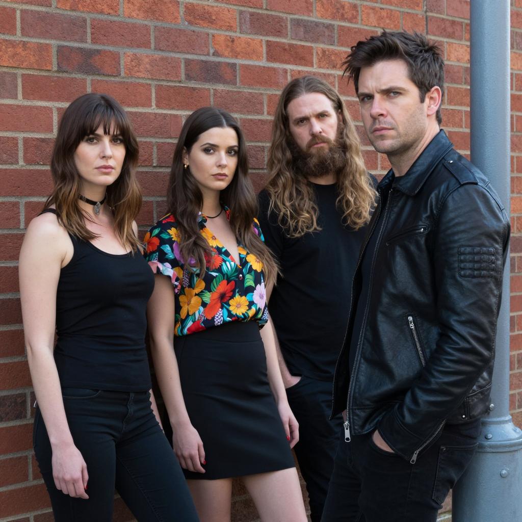 Rock Band Group Portrait in Leather Jackets