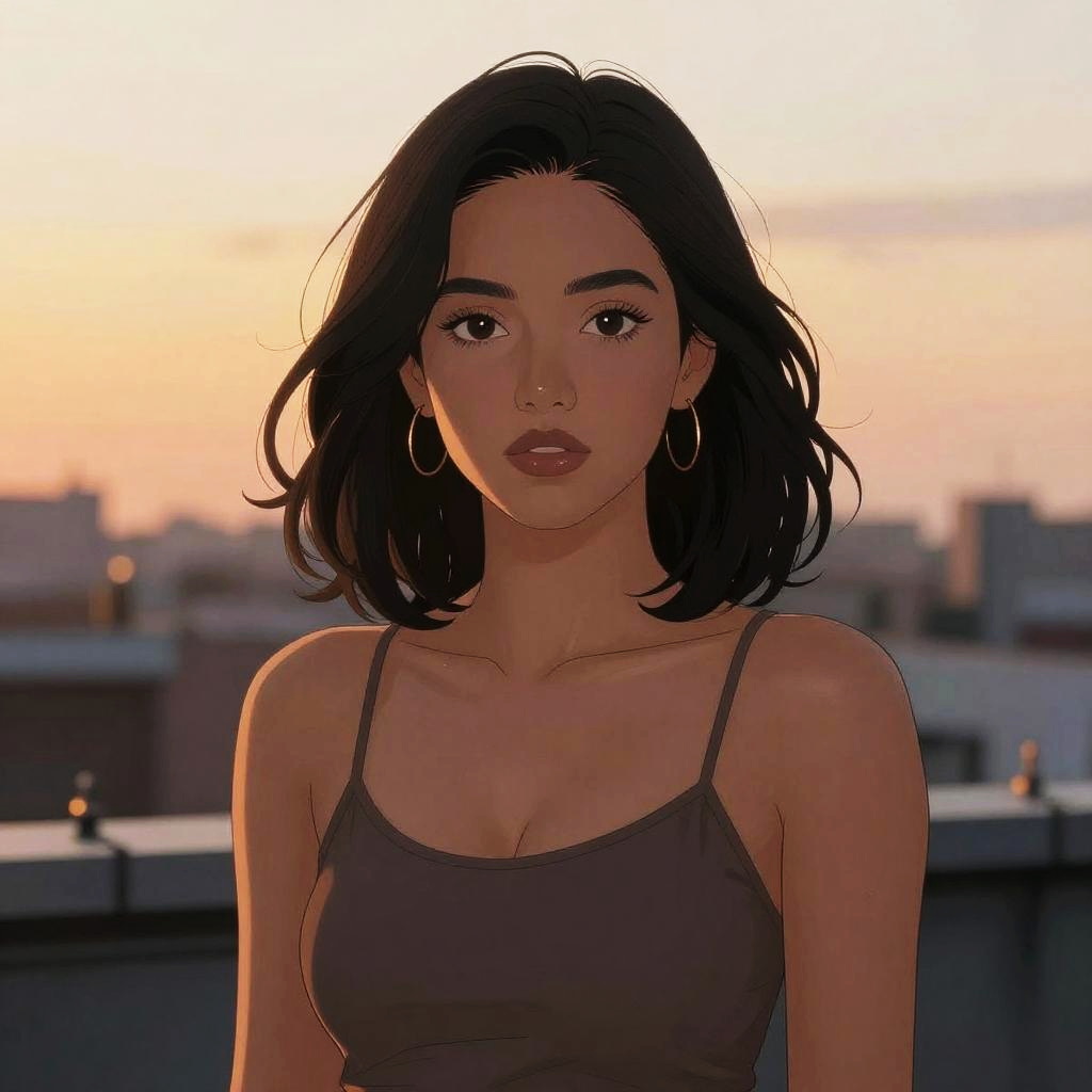 Score_9, score_8_up, score_7_up, score_6_up, score_5_up, score_4_up, source_cartoon, source_anime, 1girl, adult, medium skin tone woman with short pixie cut black hair, amber eyes, confident smirk, gold earrings, tube top, tasteful cleavage, bare shoulders, arms behind back, solo, upper body, looking at viewer, modern art gallery with abstract sculptures and soft spotlighting, clean lineart anime with soft pastel coloring, warm rim light, dynamic lighting, color harmony, depth of field, soft bokeh, sharp focus, clean composition, subtle freckles, skin sheen, detailed hair strands, fabric texture, professional illustration, high quality, masterpiece, best quality, sdxl, safe for work, no watermark, no text
