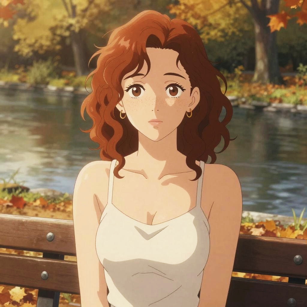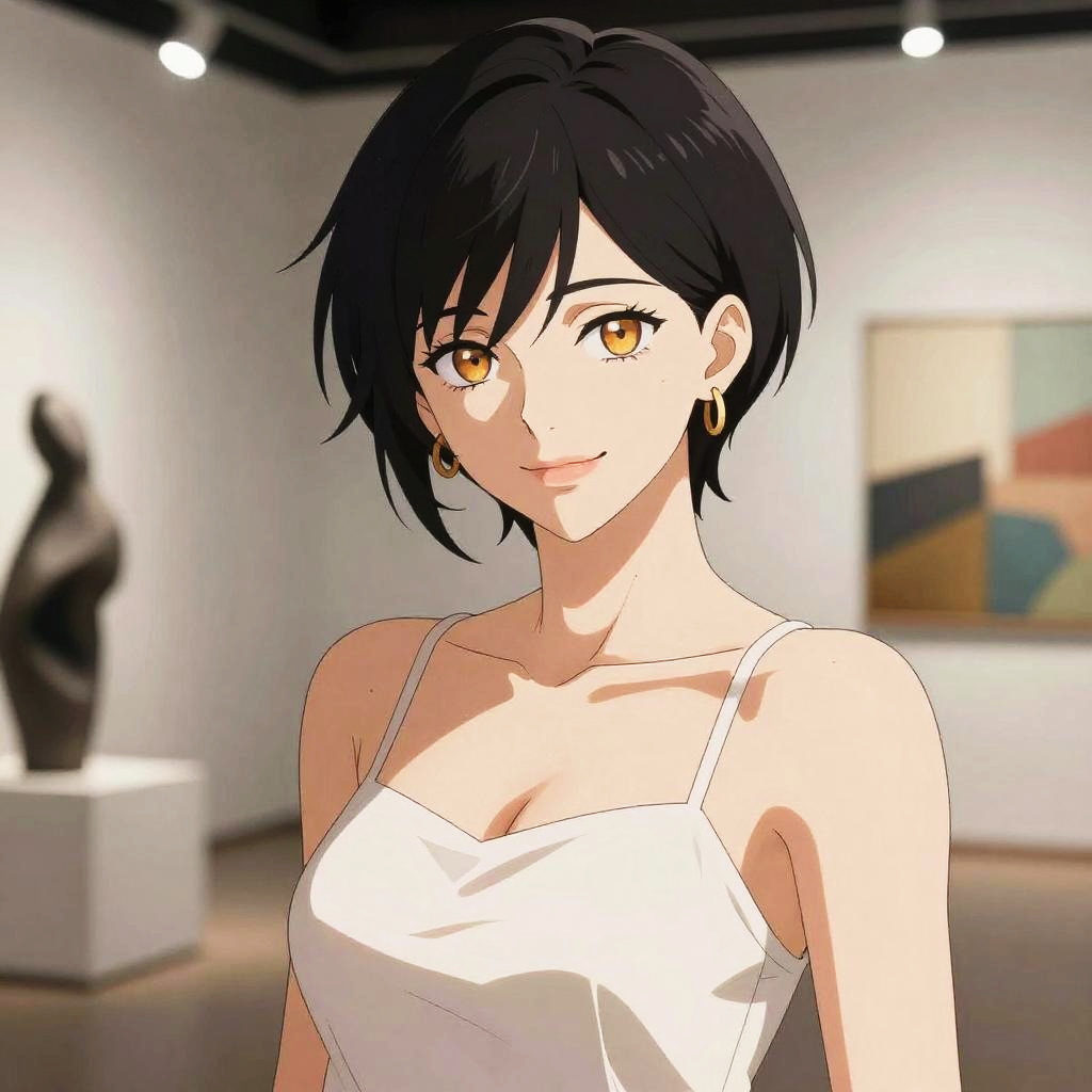Confident Anime Woman in Art Gallery