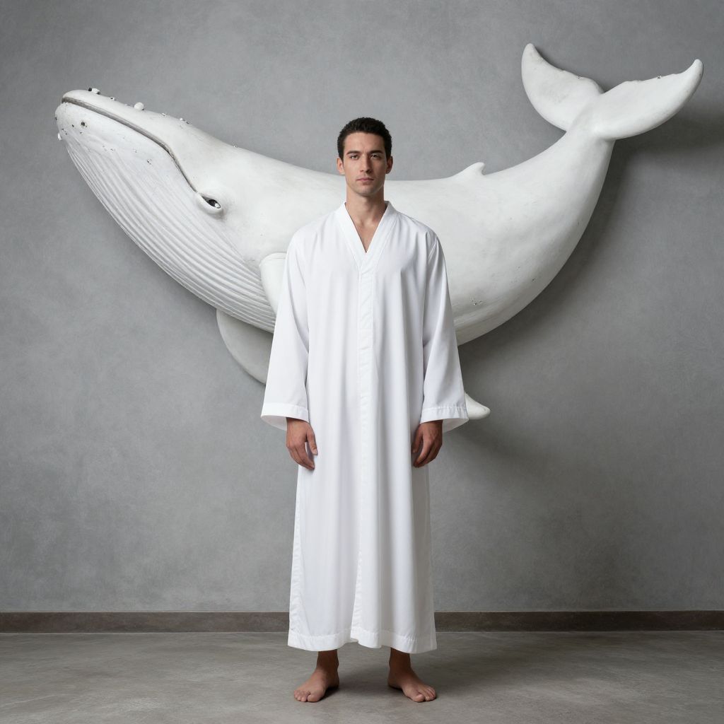 Man in White Robe with Whale