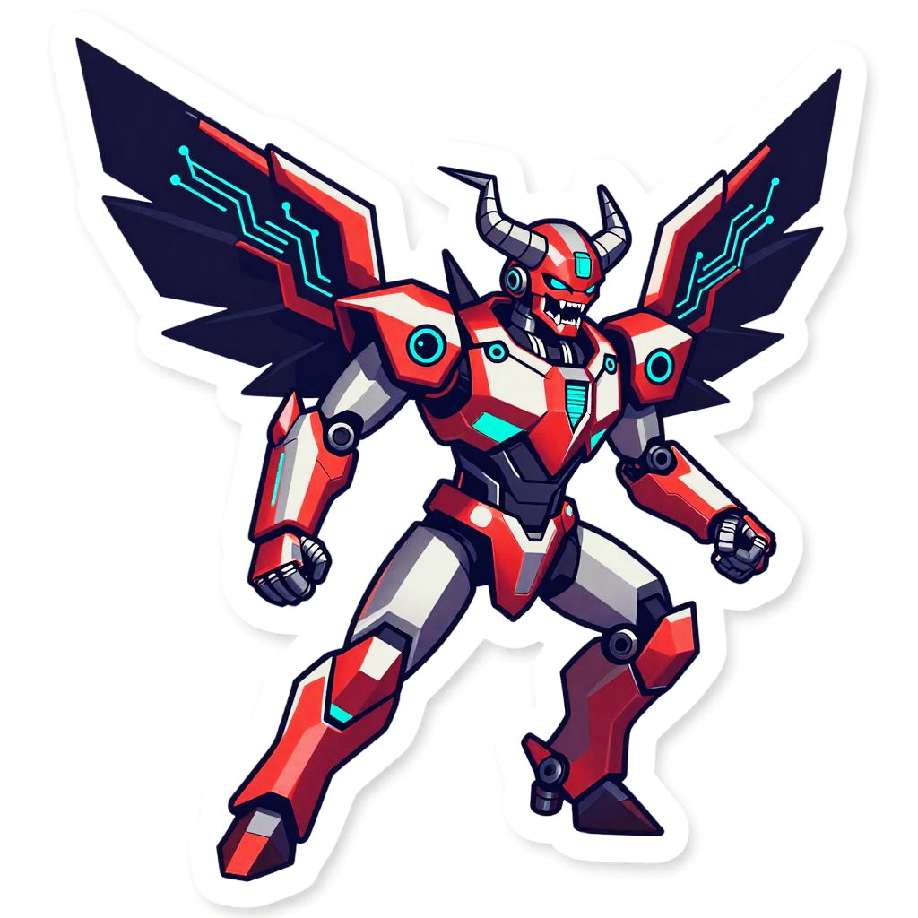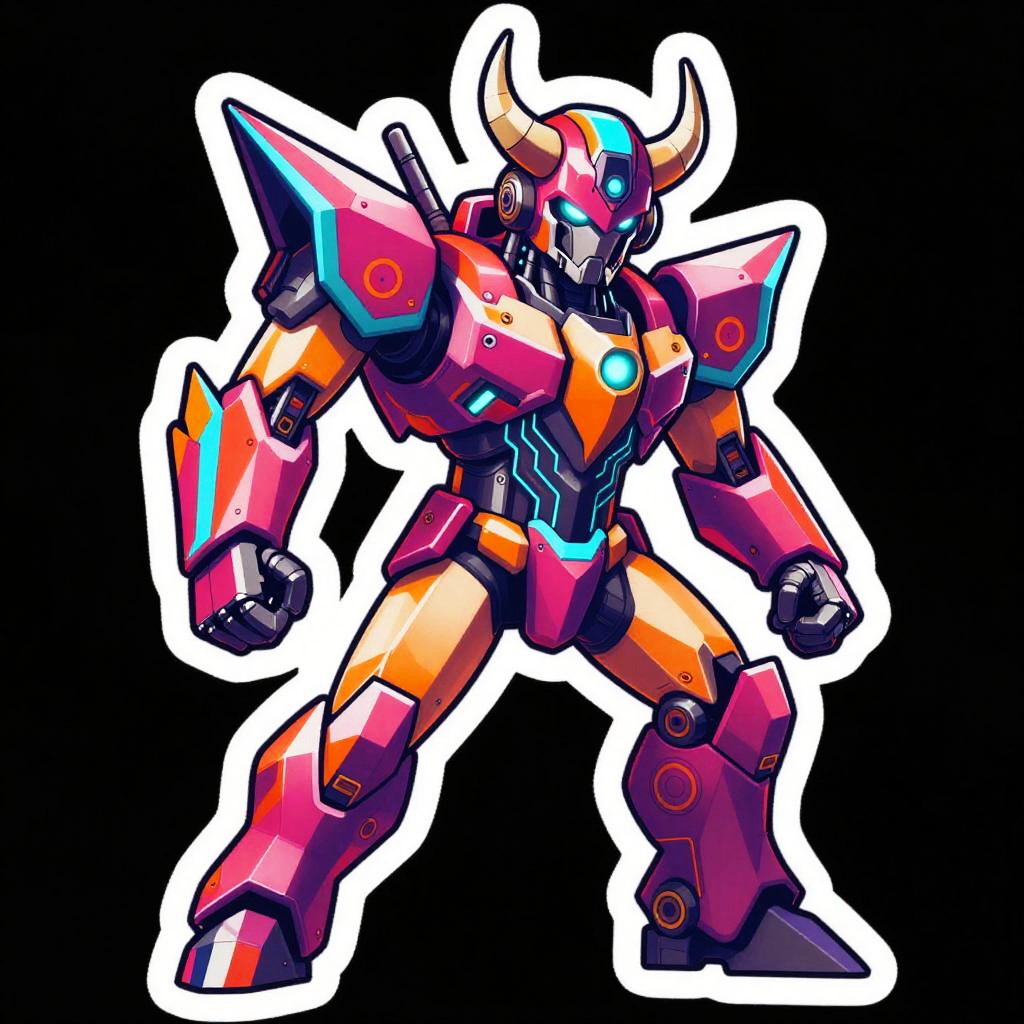 Mechashot Ravager in sticker intersecting blades geometric art style crimson and gold