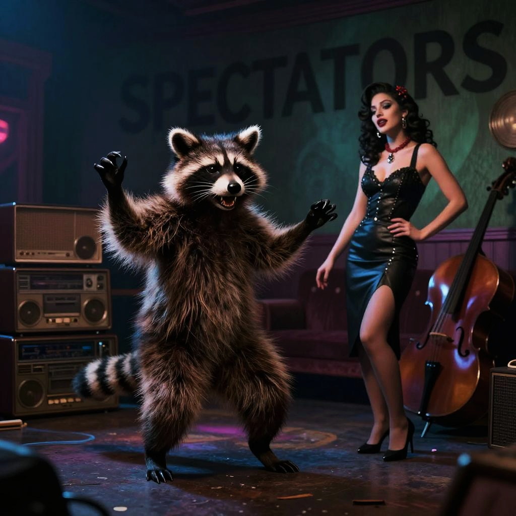 Sinister Jackal Creature and Retro Beatnik Girl Dancing