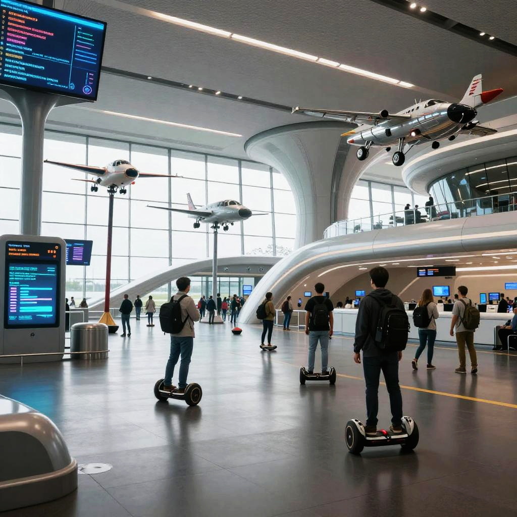 Futuristic Aviation Hub with Flying Machines