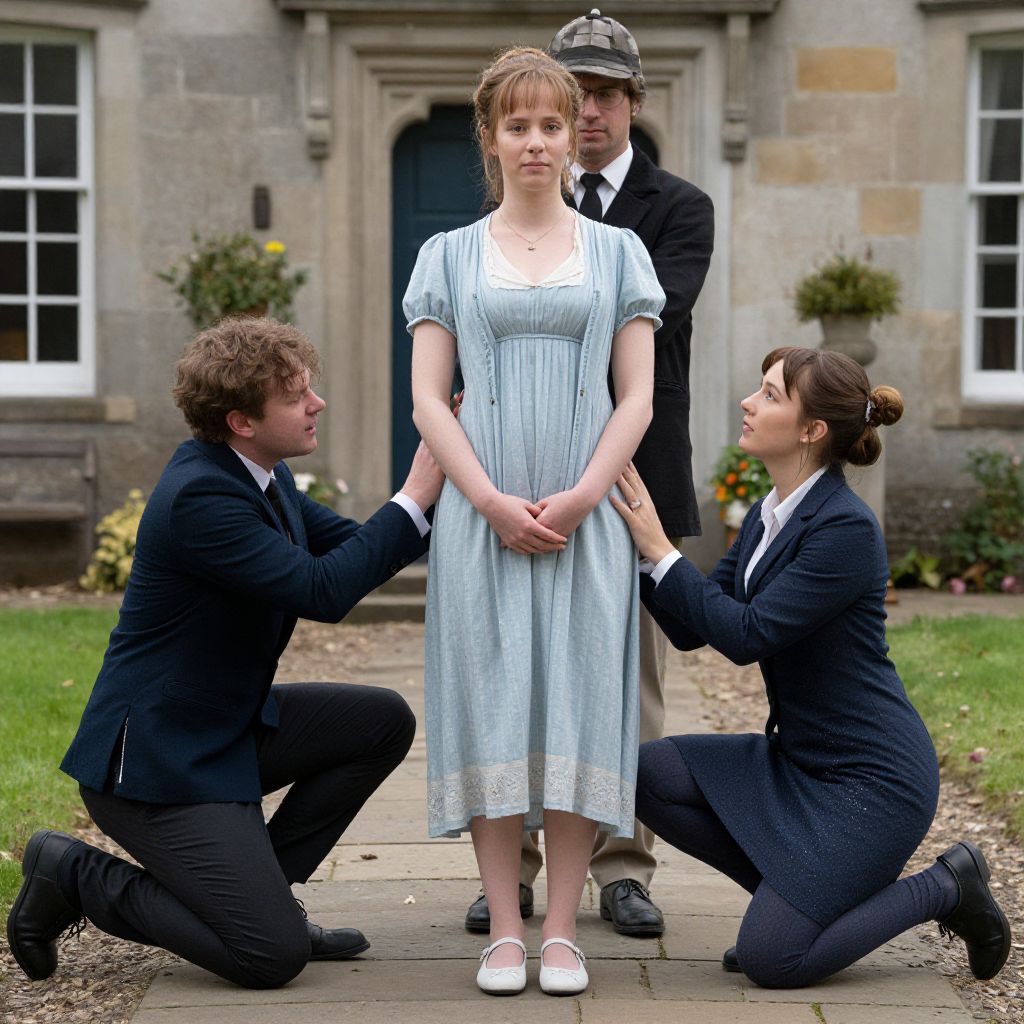 Elizabeth Bennet an obedient German ultra nationalist being humiliated and punished for bad behavior. Realistic Photography,