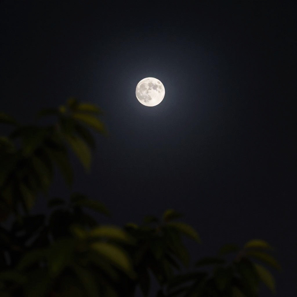 Moon, star (sky), no humans, starry sky, space, sky, night, full moon, night sky, planet, animal focus, tree, outdoors, solo, animal, leaf, black sky, 1other, scenery, plant