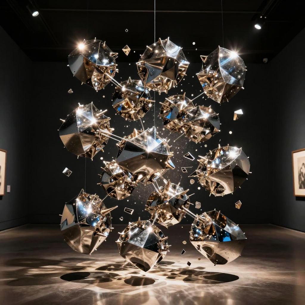 Surreal psychedelic architecture, floating geometric prisms, parametric bamboo lattice spire on the Louvre Museum, ultra-realistic, cinematic lighting, 4K