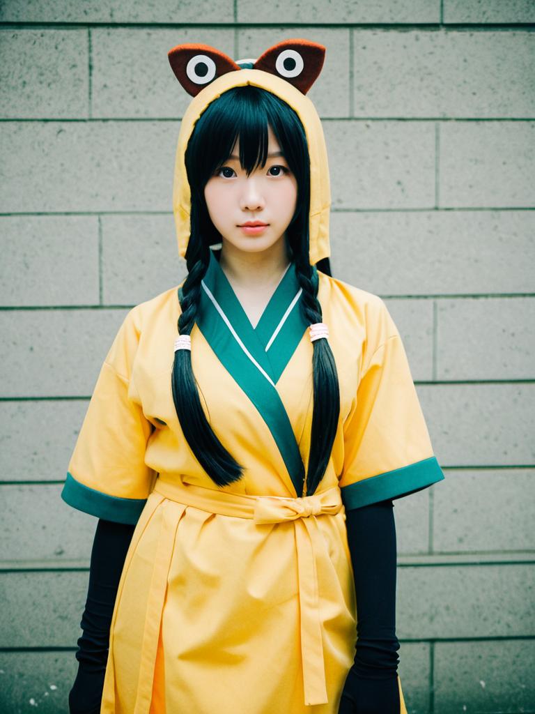 Sexy cosplay woman character wearing Anzu Futaba costume. Realistic photo. Jane Doe dressed as Anzu Futaba