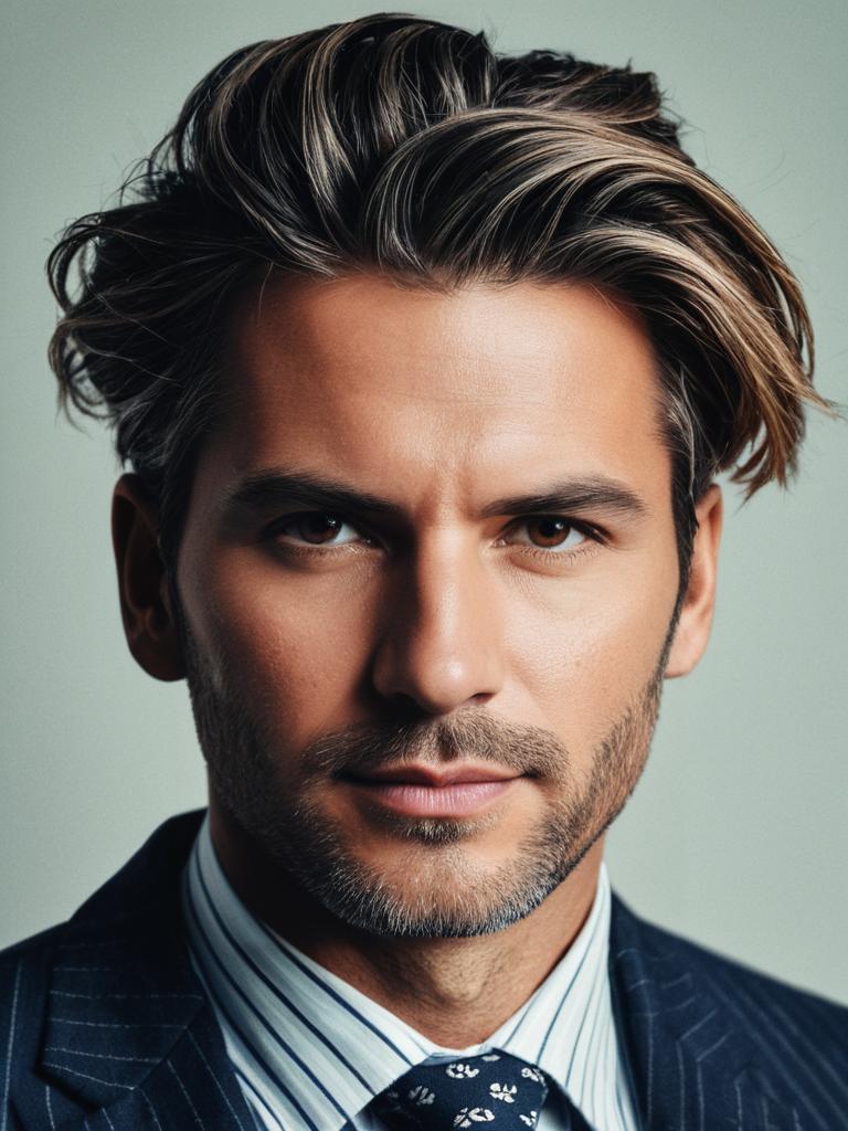 Man in Summer Professional Outfit, close-up detailed headshot with styled hair