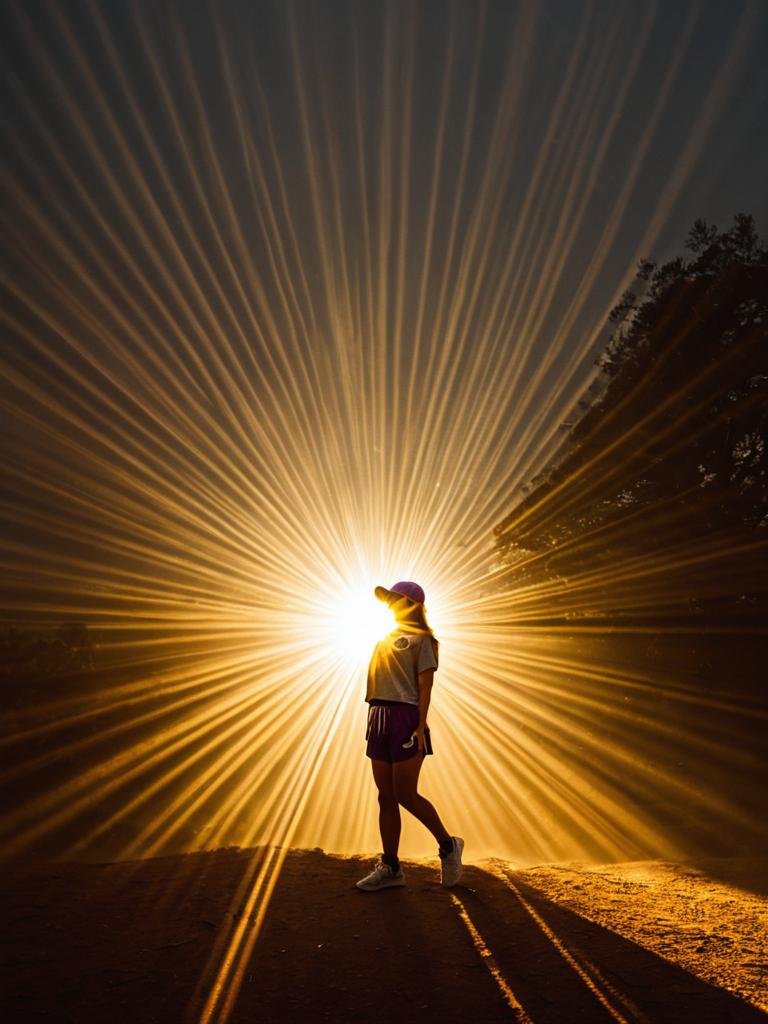 Woman, casual sporty, cropped grey t-shirt, relaxed fit, short sleeves, green drawstring shorts, relaxed fit, side pockets, yellow baseball cap with purple logo, plain white background --sref 1443