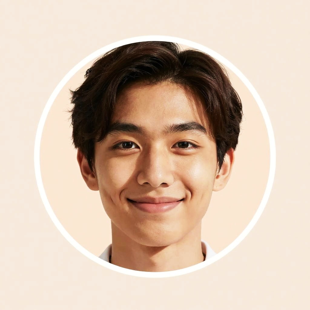 Generic instagram profile pic of a cheerful person with a subtle smile, plain pastel background, warm natural light, simple accessories, sharp focus on eyes