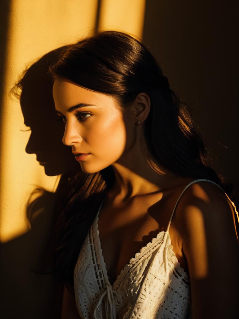 Woman in White Eyelet Romper with Shadow