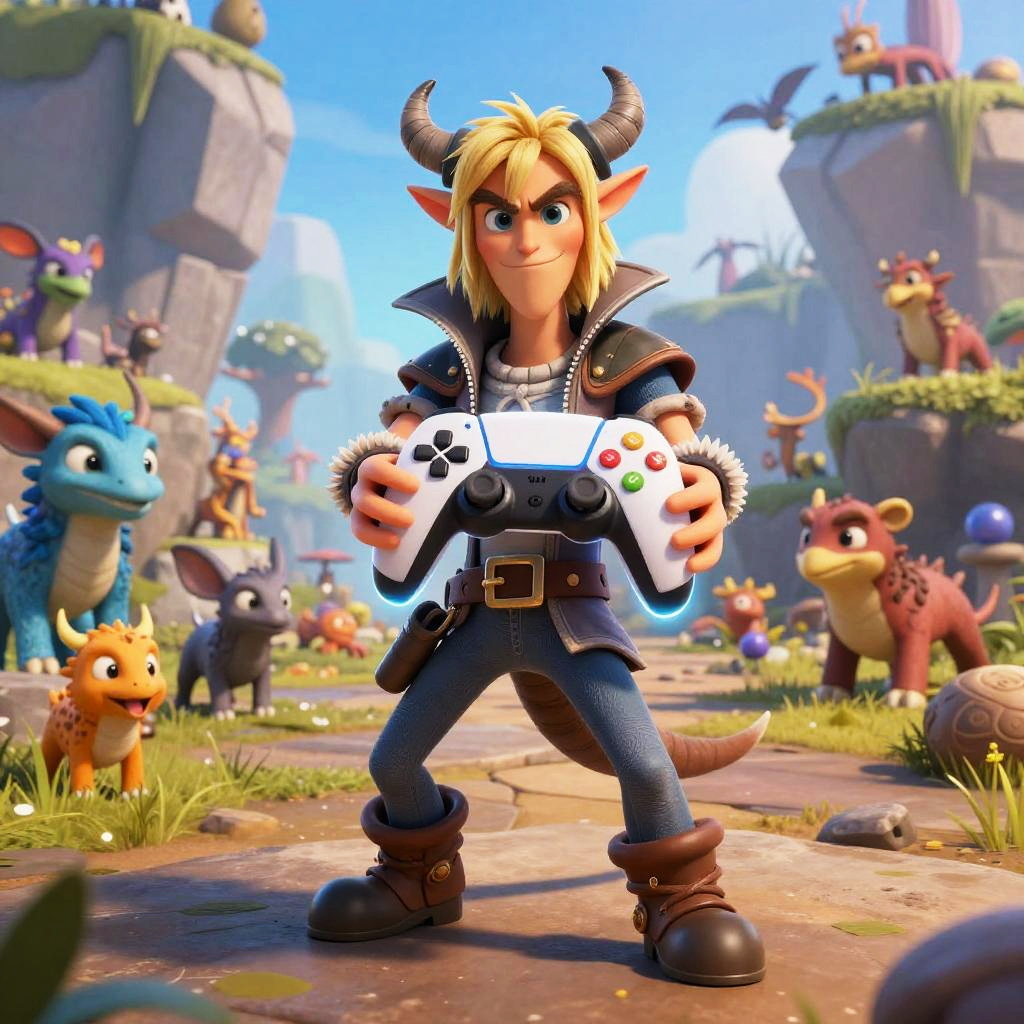 PlayStation Hagrid in a wizard gaming room, enchanted artifacts surrounding, vintage PS controller in hand, cozy magical atmosphere, realistic digital painting style