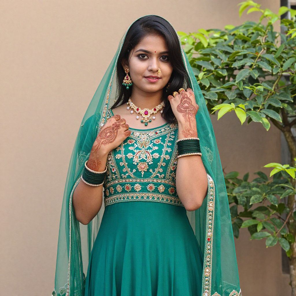 "Wedding Traditional, a close up of a woman in a traditional dress standing in a room"