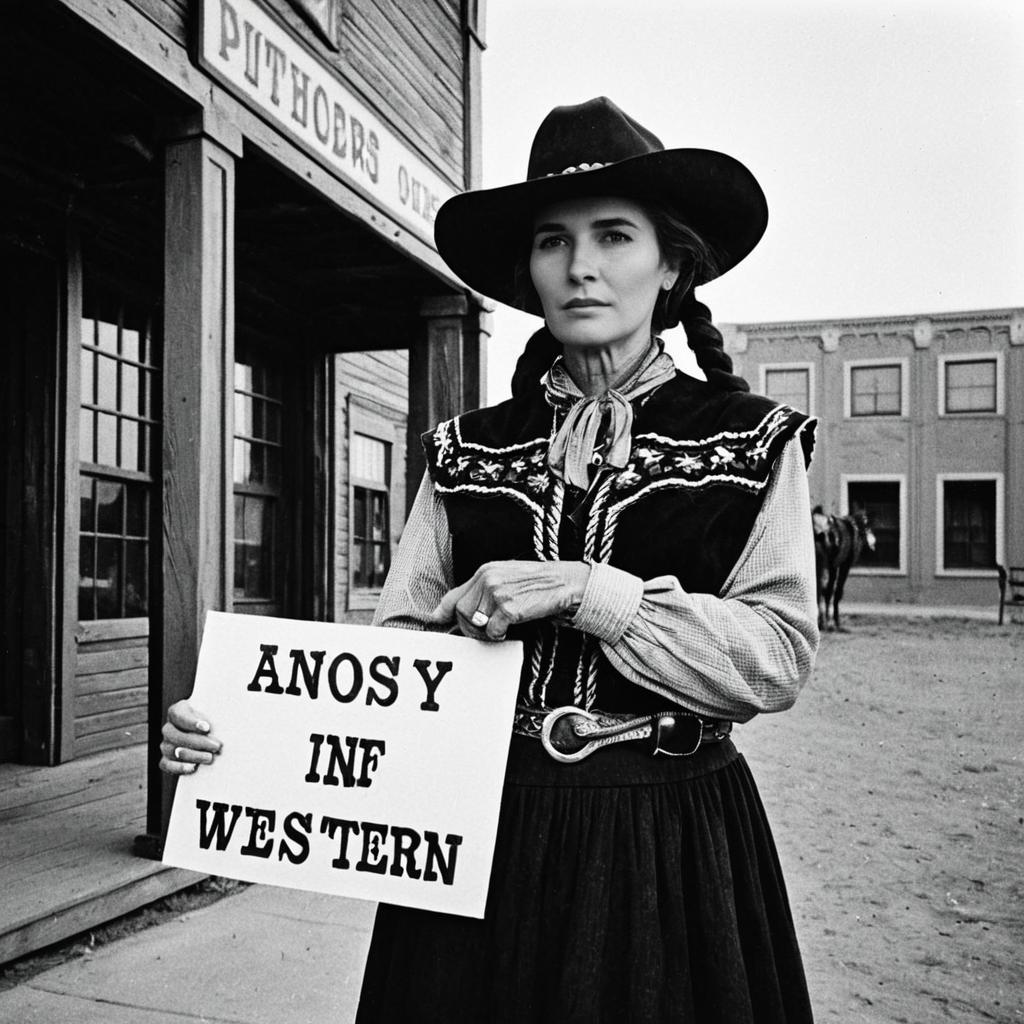 Old Western Woman Holding Sign