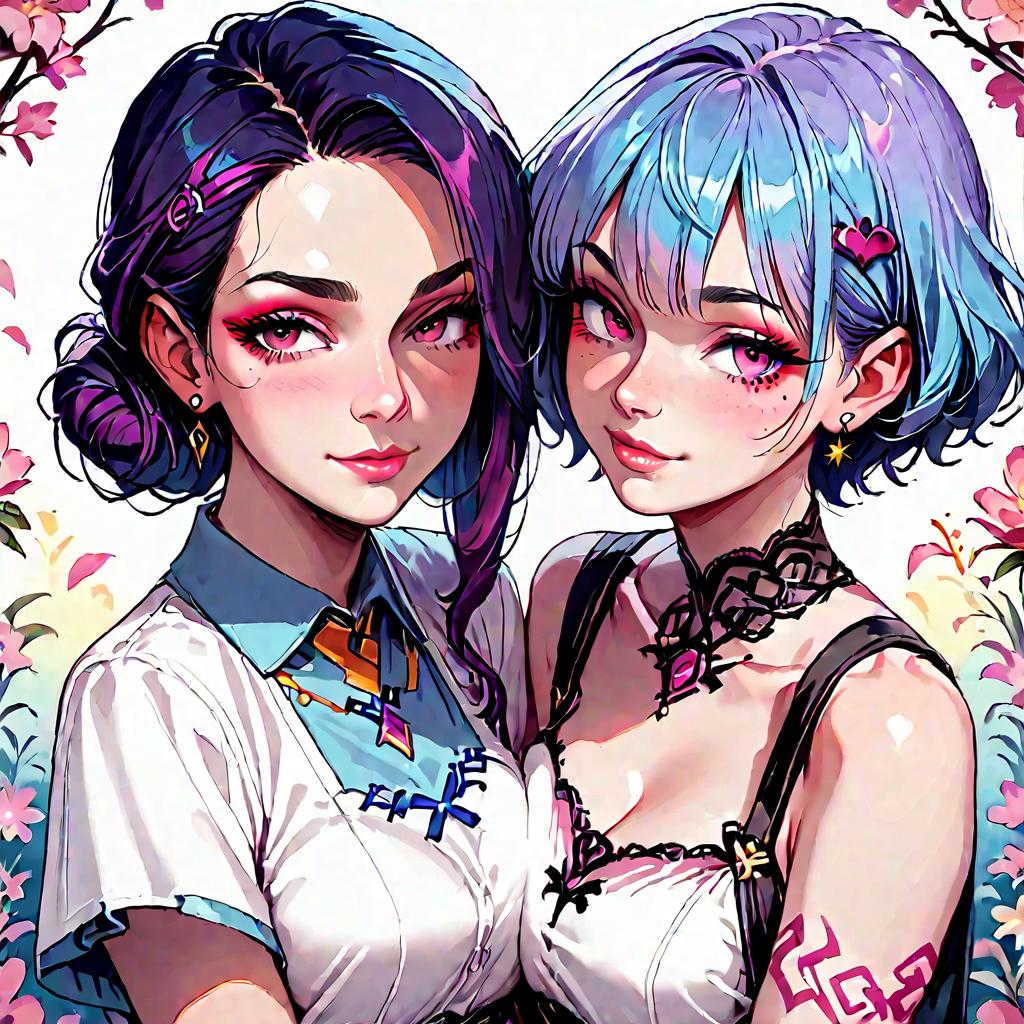 (score_9, score_8_up, score_7_up), pink skin, 2 girls, from behind, from back, looking back, looking at viewer, rabbit girl, maid, white thighhighs and black thighhighs, short hair, bobcut, full body