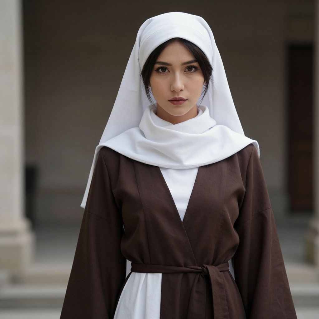 "White Cosplay, a woman in a nun costume poses for a photo"