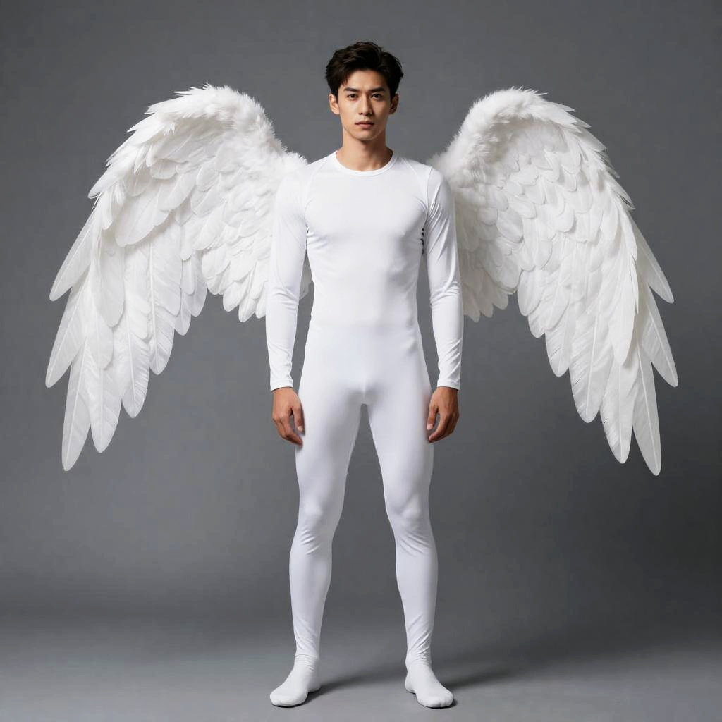 Angel Outfit Male, male angel with white wings and a white bodysuit