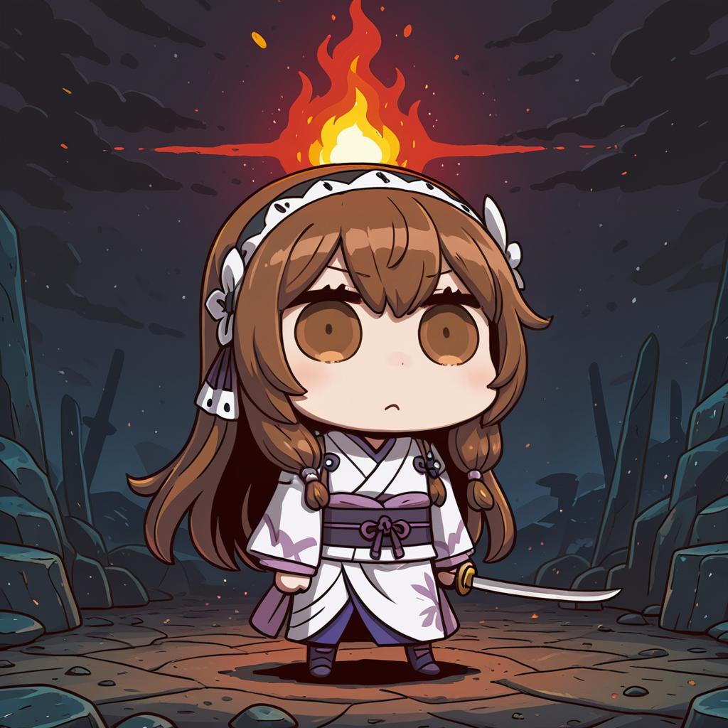 Hana (fire emblem), fire emblem, 1girl, brown eyes, brown hair, long hair, japanese clothes, katana, headband, by artist rariatto (ganguri), leet