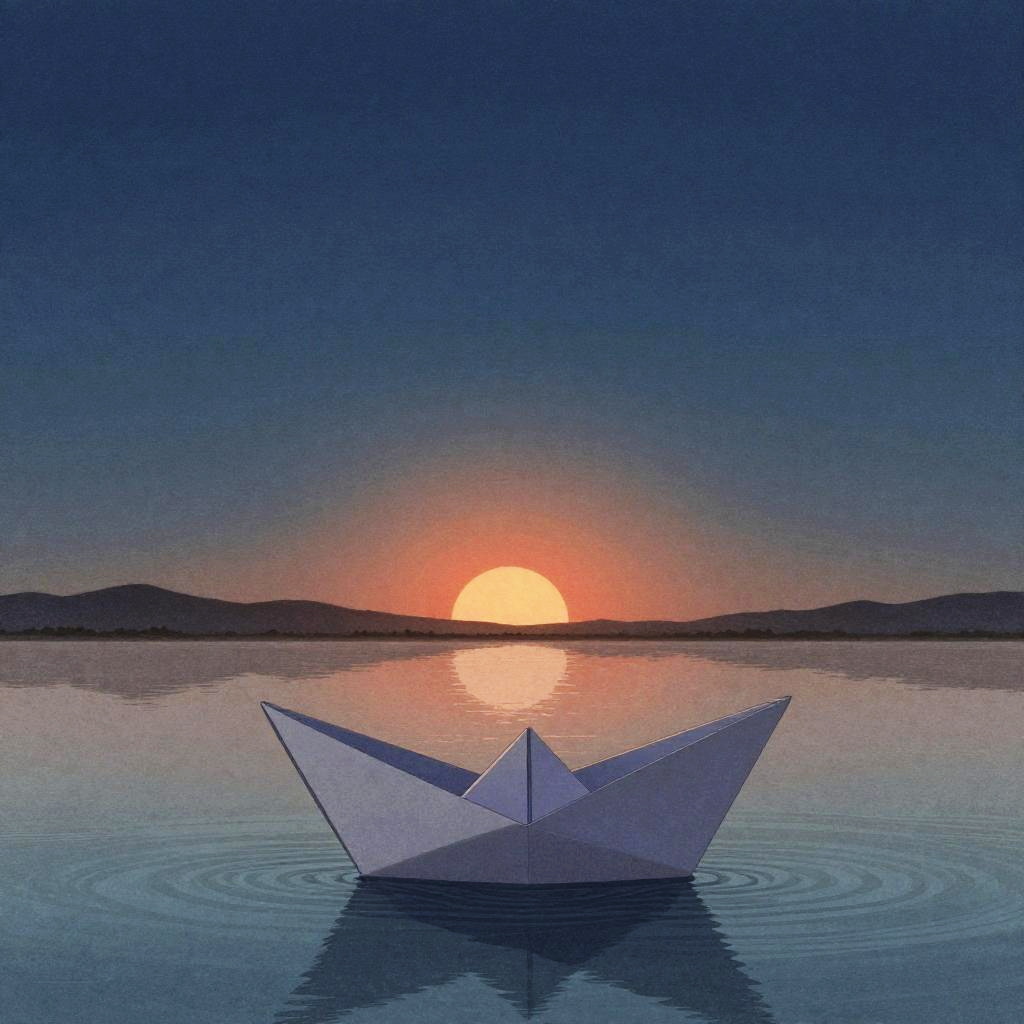 In a bioluminescent coastal lagoon, a sleek sail-powered catamaran sails gracefully across the horizon, as the sun sets, casting a warm glow over the water, captured in a dreamlike bioluminescent surreal style.