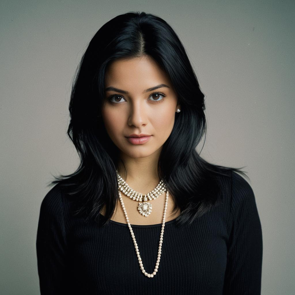 Young Woman with Black Hair and Pearl Necklace