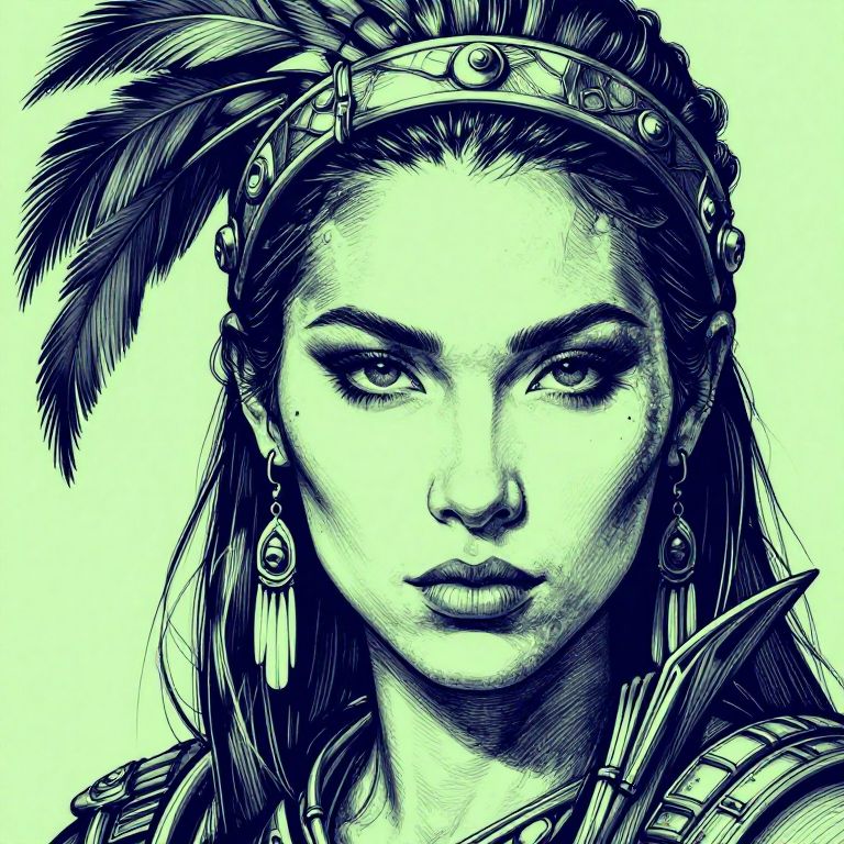 Close Face portrait of a female Amazon warrior, highlights in light green, shadows in navy blue, in the style of cyberpunk ink, ultra-detailed,
