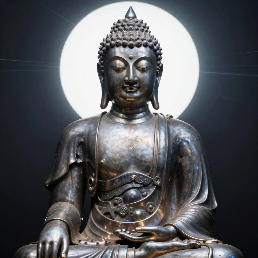 Cyberpunk Metal Buddha Statue Portrait