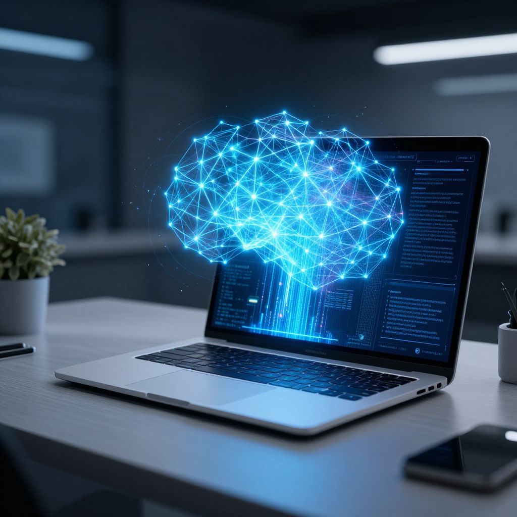 ChatGPT drawing AI creating futuristic digital art on a sleek transparent tablet, neon blue and purple hues blending, circuits and code flowing dynamically in the background, a creative AI assistant visualizing imagination, ultra-detailed sci-fi style.
