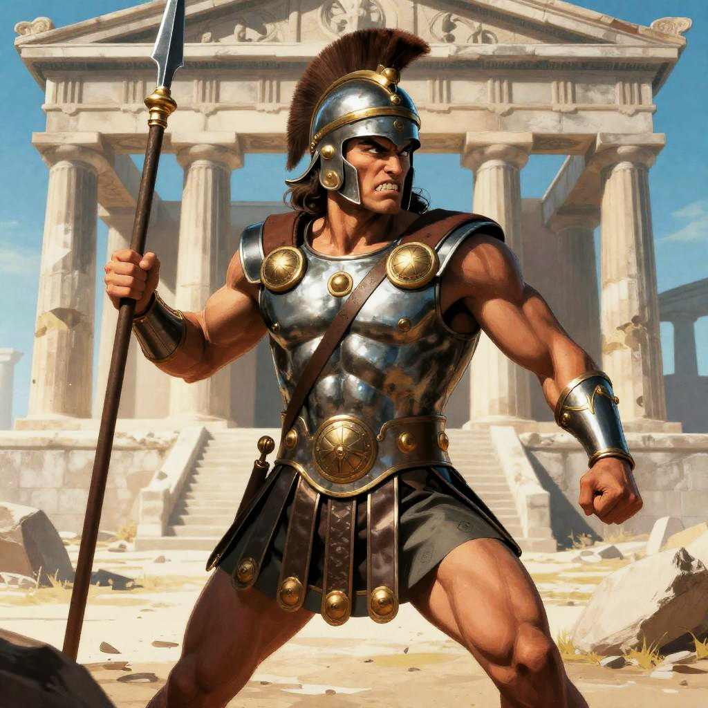 Comic Style Odysseus Fighting on Stormy Ocean Shore