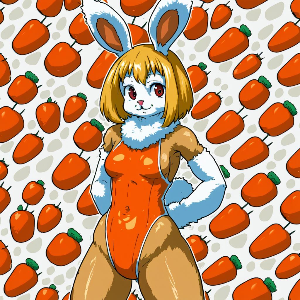 Carrot (one piece), one piece, 1girl, furry female, rabbit ears, rabbit tail, red eyes, brown eyes, blonde hair, short hair, large breasts, rabbit girl, white fur, animal nose, by artist fuuen (akagaminanoka), anime