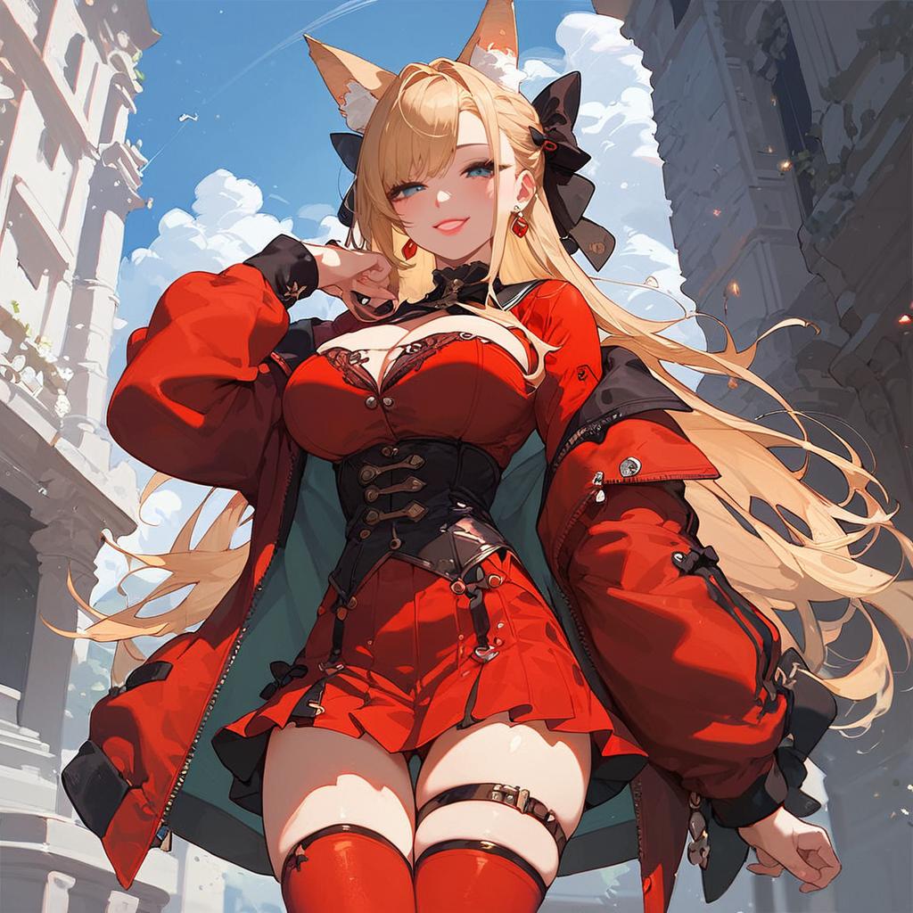 Blonde Miqo'te at Neon Sunset Cityscape