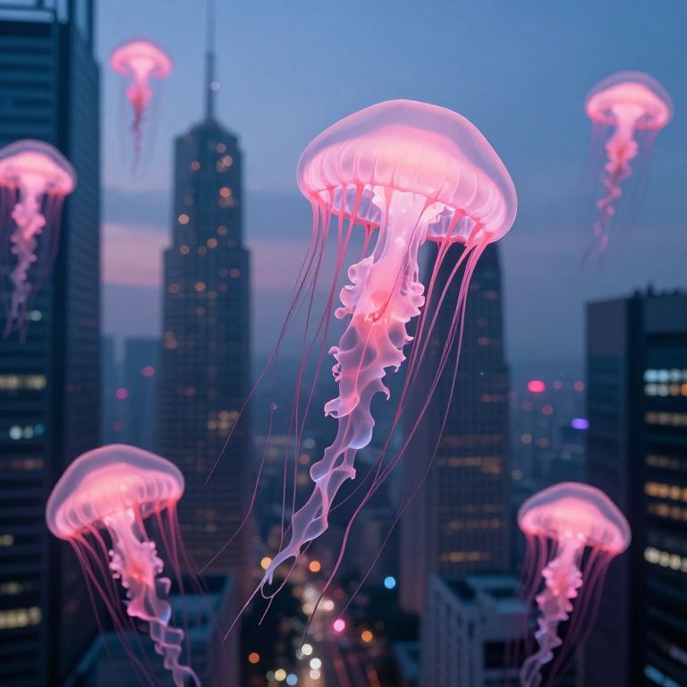 Pink Jellyfish Among Twilight Skyscrapers