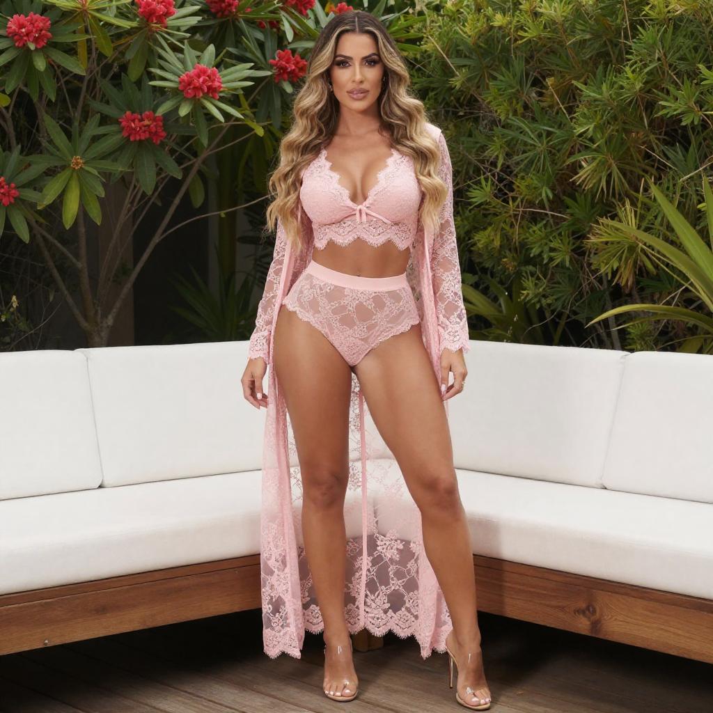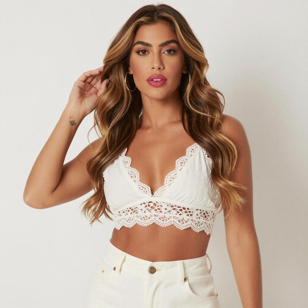 Curvy Woman in White Lace Outfit