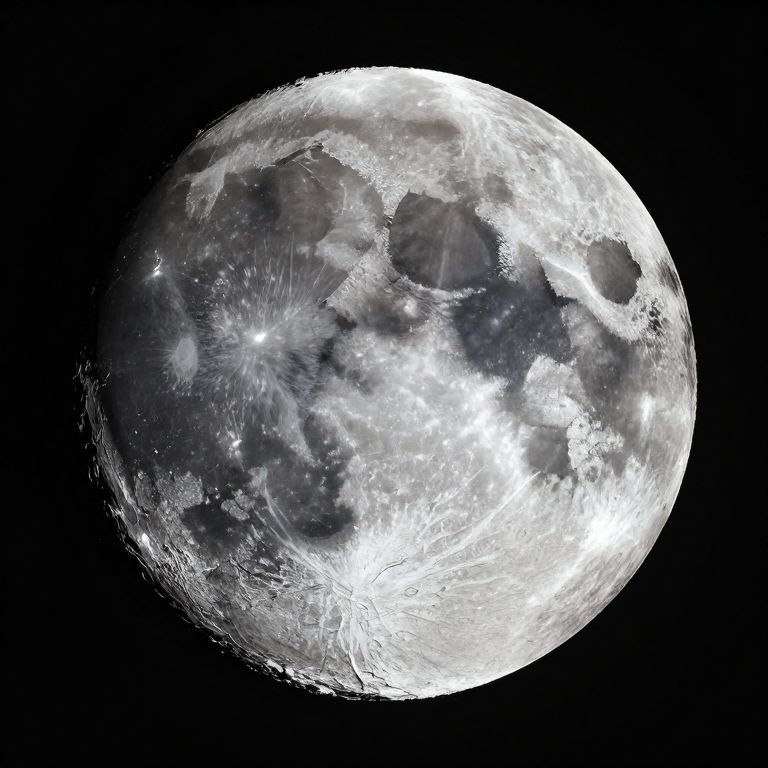 Photorealistic CGI of a full moon with detailed craters, bright white highlights, and dark shadowed areas against a black background.